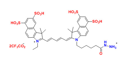 各種花青5.5(Cy5.5)染料已用于標(biāo)記生物分子,用于熒光成像和其他基于熒光的生化分析。 它們廣泛用于標(biāo)記肽,蛋白質(zhì)和寡核苷酸等。Cy5.5染料是最常見的紅色熒光團(tuán)中的一種。 Cy5.5酰肼與羰基反應(yīng)。